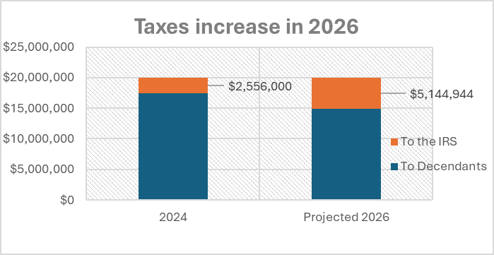 Figure 2: Example: Due to the upcoming tax law change, a $20M estate would incur an additional $2.5M in tax.