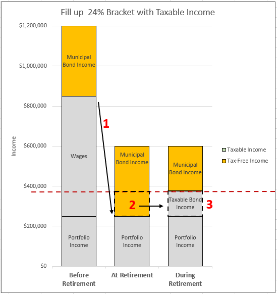 - During Retirement – After swapping, you now fill the 24% bracket, and created an optimal mix of bonds.